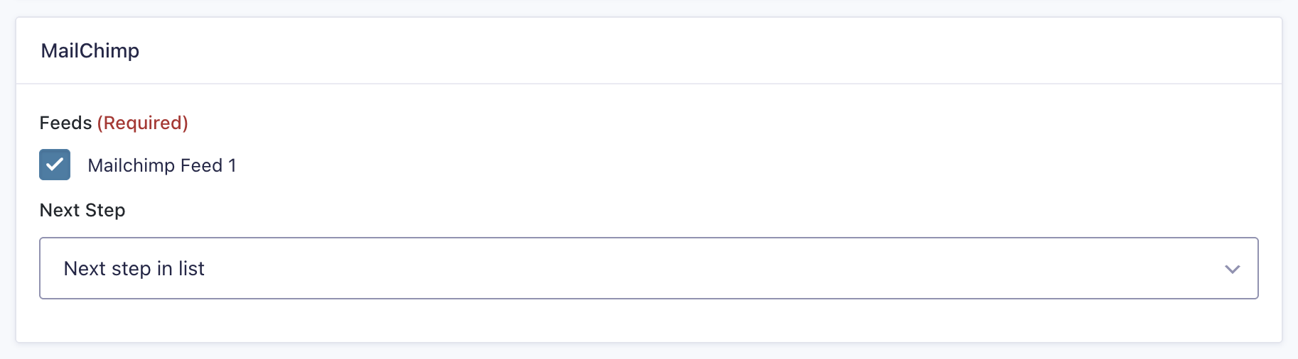 Mailchimp FeedSelects which Mailchimp feed to execute for this step. Required
